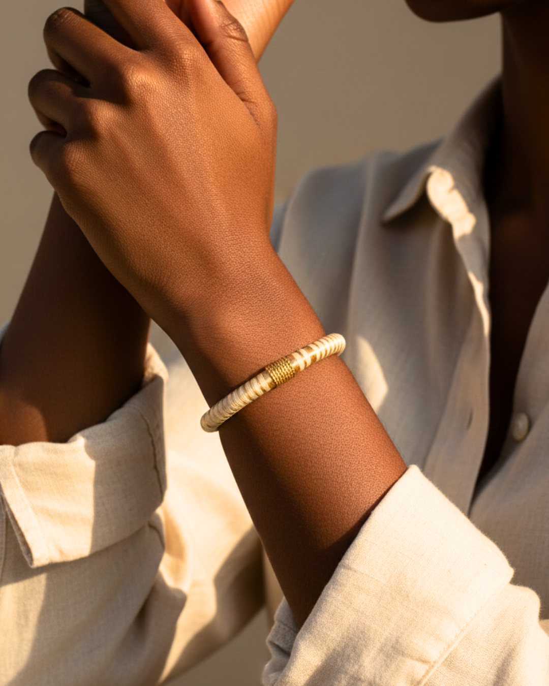 Los diseños combinan tradición ancestral con elementos contemporáneos, incorporando en algunas piezas metales como bronce con baño en oro de 24 quilates y cobre esmaltado, logrando piezas únicas de joyería y decoración.